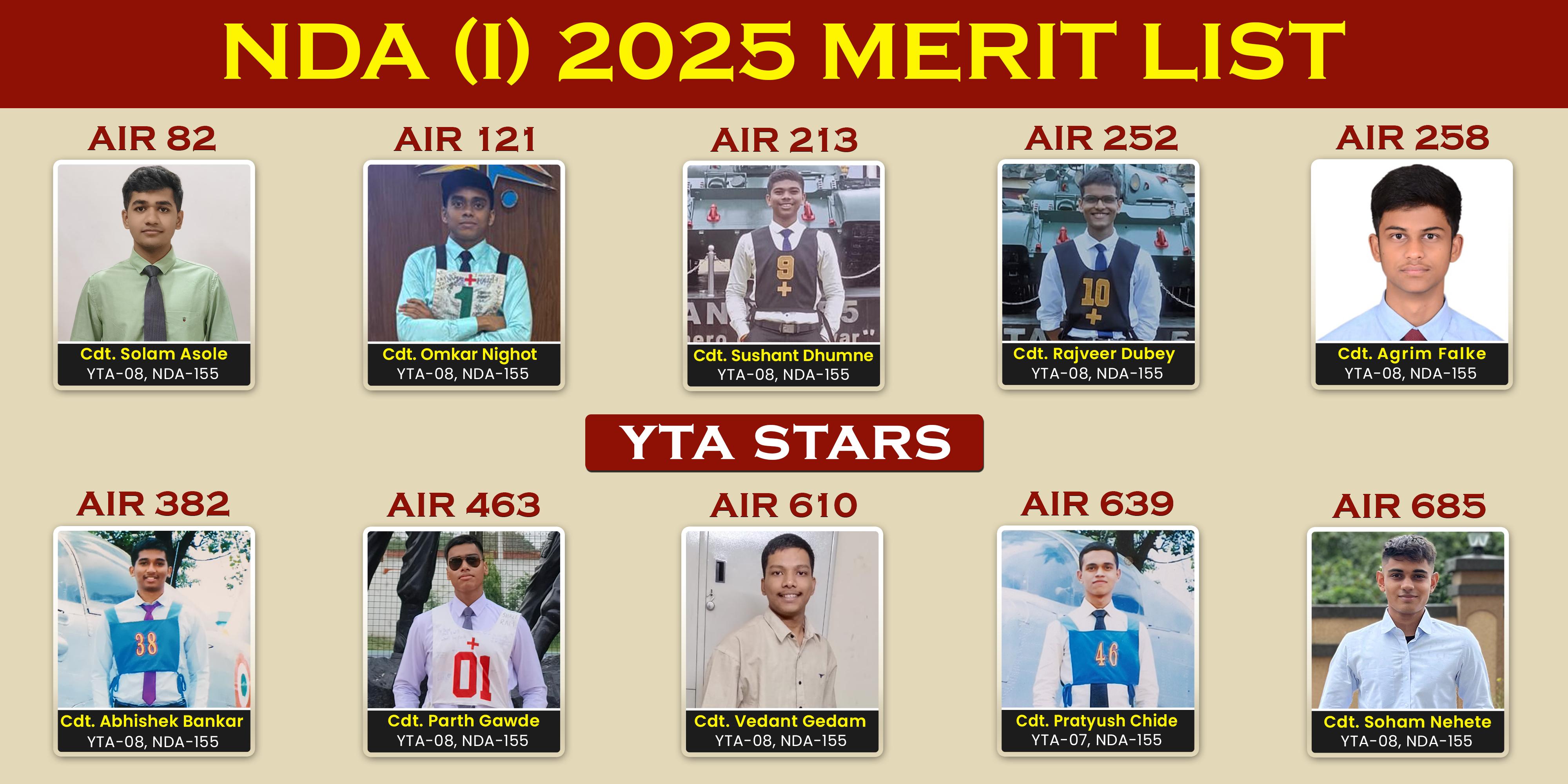 Jai HIND I'm CDT.Sanskar Mandale has currently passed the NDA written examination NDA 1 2024. It was a very fantastic journey in YTA; the institution gave me a lot of experience to face challenges, including improvement in academics. I like the concept of overstudy in YTA because it gave each CDT. personal attention and sought improvement in each CDT. Also, the kind of discipline followed in YTA shapes the habits and routine of individuals. Here I developed in the sports section as well. YTA provided me a platform to perform in academics and improve in personality. YTA makes leaders. I was appointed as a Battalion Cadet Captain (BCC), so I took various initiatives to develop the Devils Battalion. This is how YTA provides a platform to each CDT with responsibilities. The strength of YTA is the environment for not only studies but also for growth in personality (which is more important than academics).